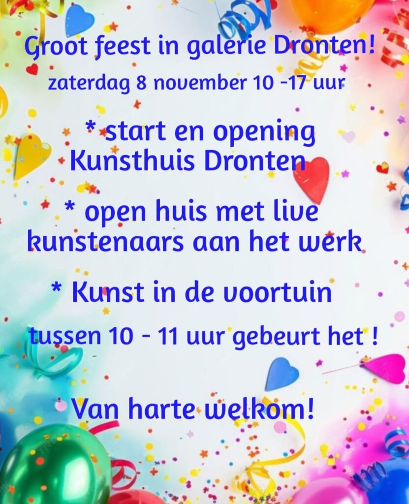 Kunst ontroert, verwondert en verbindt ons allemaal. De doe- en kijkdag georganiseerd door Kunstvereniging Galerie Dronten is een leuke dag waarbij je over de schouders van kunstenaars kan meekijken. Maar wat 8 oktober ons gaat brengen is nog een verassing.